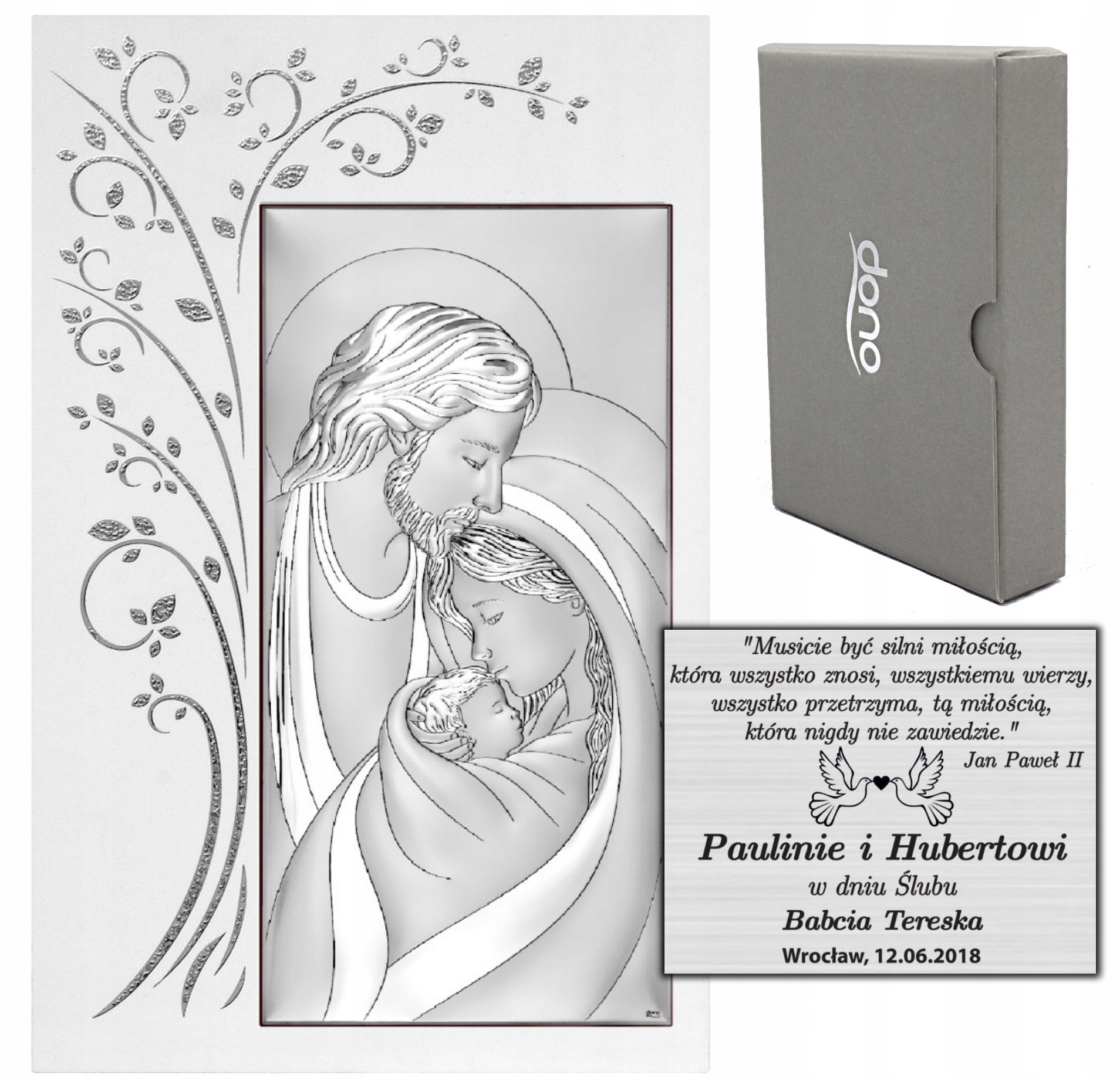 SREBRNY OBRAZ ŚWIĘTA RODZINA PAMIĄTKA ŚLUB CHRZEST