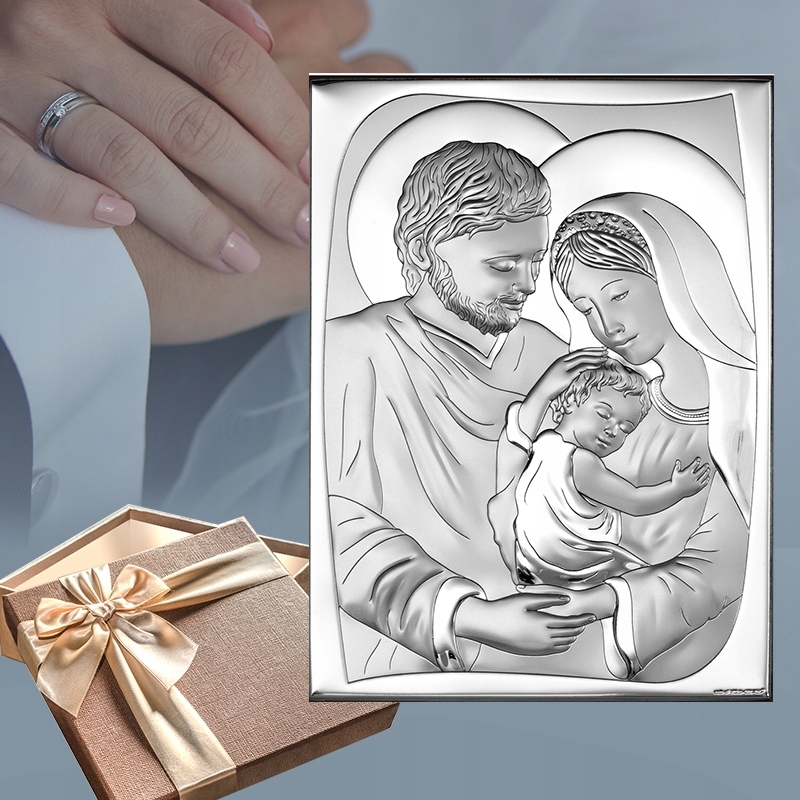 ◉ Изящная серебряная картина с изображением Святого Семейства – прекрасный сувенир на память о многих важных торжествах