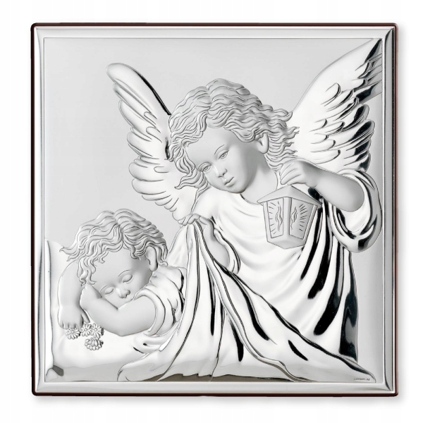 Сувенир Святого Крещения - Серебряная картина - Ангел-Хранитель с фонарем