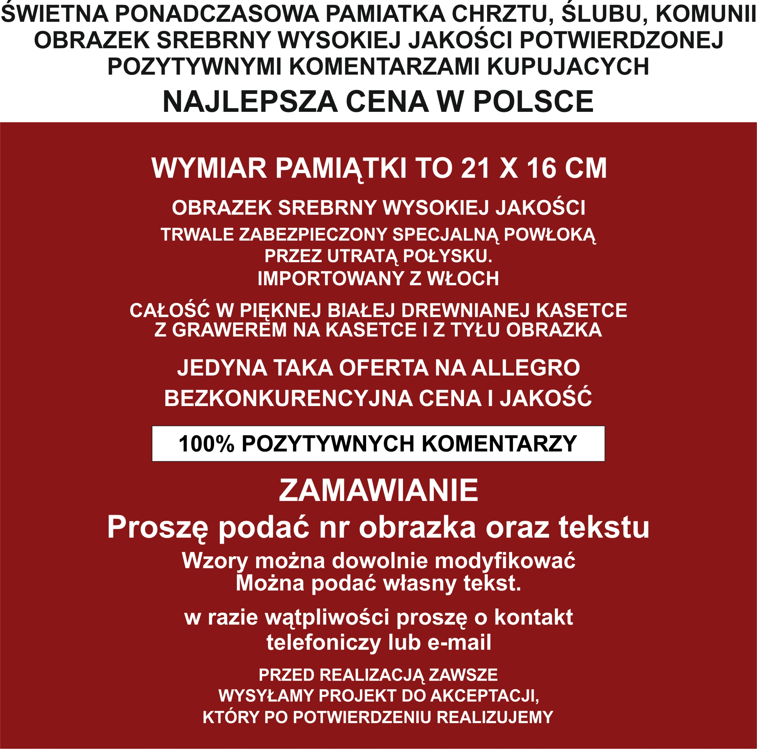 Оплачивая «СРІБНА КАРТИНА XXL В ДЕРЕВ'ЯНОМУ КОРПУСІ, ГРАВІРУВАННЯ», вы можете быть уверены, что данное изделие из каталога «Ложки, погремушки» будет доставлено из Польши и проверено на целостность. В цене товара, указанной на сайте, учтена доставка из Польши. Внимание!!! Товары для Евросоюза, согласно законодательству стран Евросоюза, могут отличаться упаковкой или наполнением.