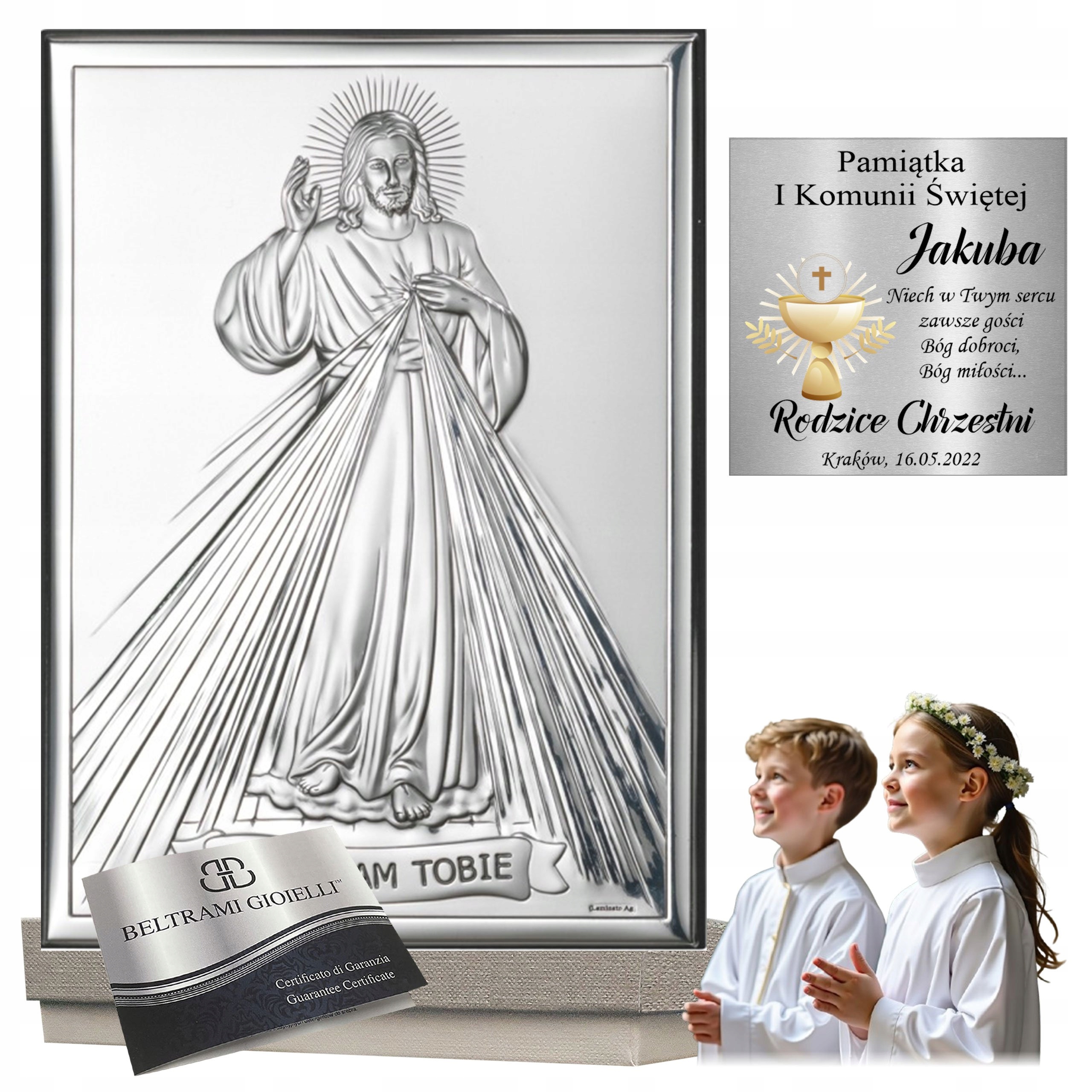 Элегантная серебряная картина с изображением Господа Иисуса с хозяином. Это уникальный сувенир первого святого причастия, которое впечатляет не только тонкую эстетику, но и глубокую символику и высокое качество .