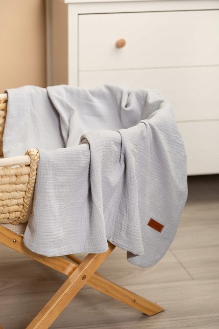 Муслиновое одеяло из высококачественной 100% хлопковой ткани. Он сделан из двух слоев хлопка, что делает его легким и воздушным. Это хорошо работает во время прогулок в теплые солнечные дни, его можно использовать в качестве более толстого пеленки, для ежедневных игр или в качестве крышки во время кормления. Деликатный хлопок обеспечивает достаточную циркуляцию воздуха, а также не аллергию и не раздражает кожу ребенка. Дополнительным преимуществом одеяла является красивая текстура ткани.