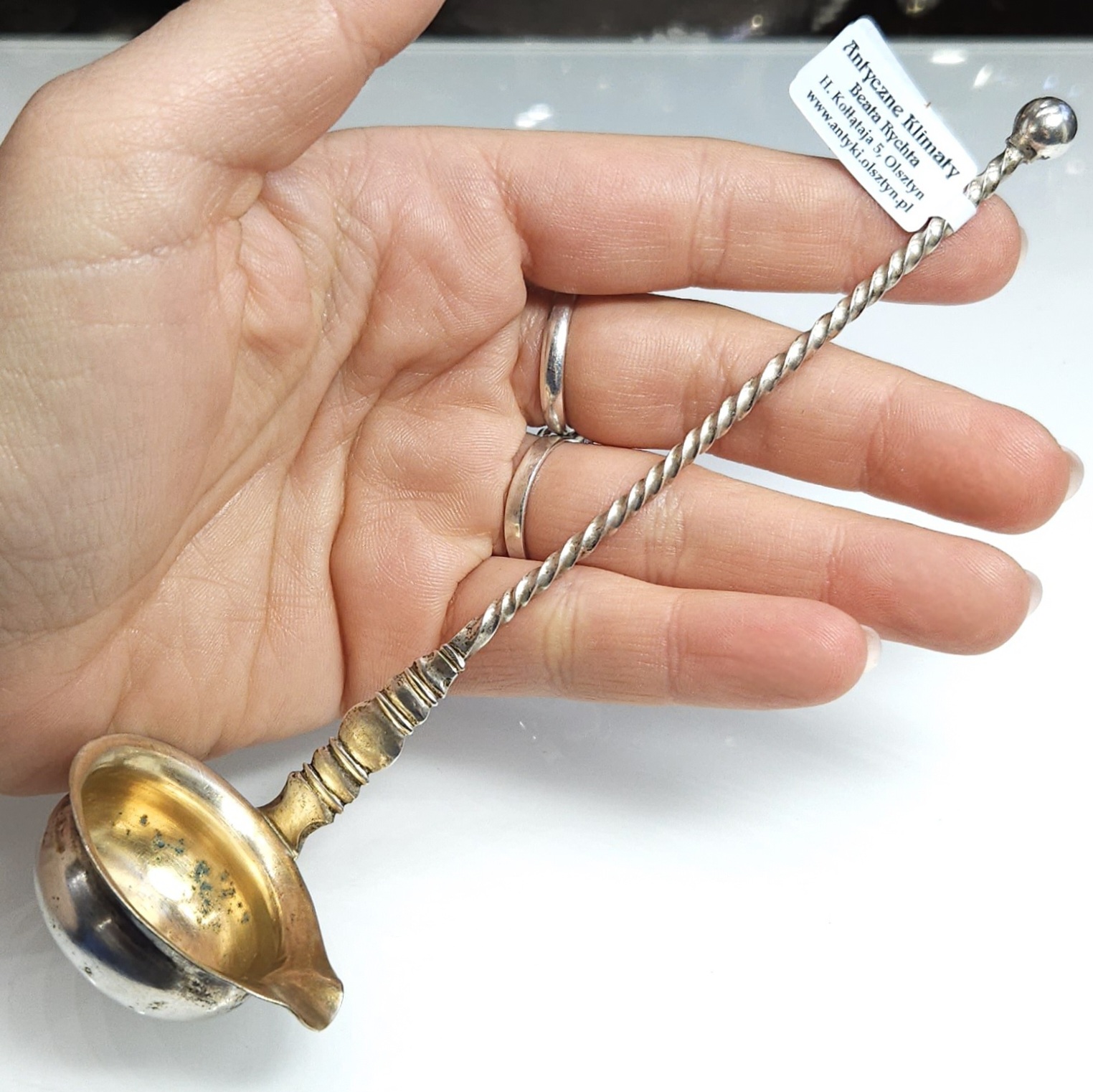 Срібна ложка, ківш, срібло пр. Кручена ручка 0,800, позолочена ложка