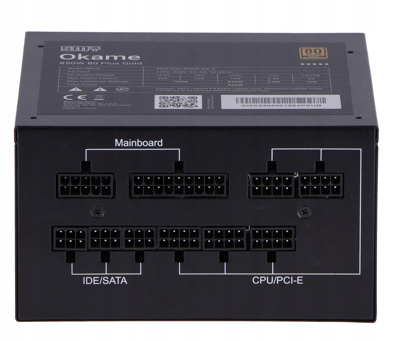 Питание smx okame 850w - это модульное устройство, которое имеет сертификат 80 плюс золото eu , которое гарантирует оптимальную производительность, стабильность и безопасность для вашего компьютера. Широкая совместимость, включая поддержку самых сильных видеокарт с 12 -контактным разъемом, основанным на интерфейсе PCIE 5.0, позволяет широко использовать и душевное спокойствие для будущего .