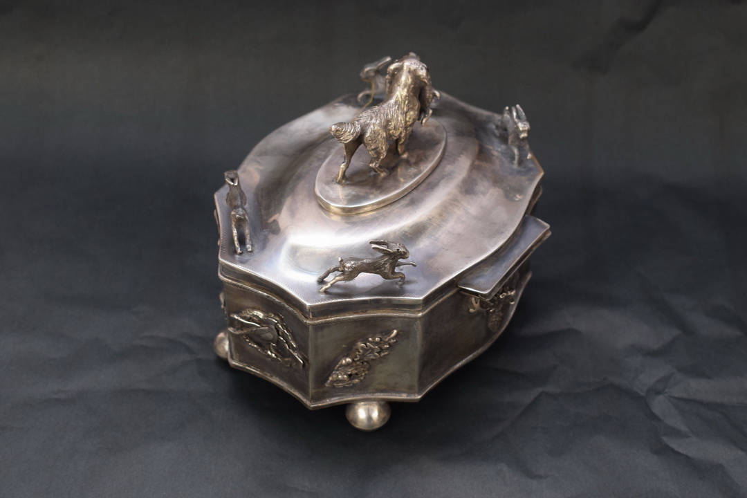 Срібна мисливська цукорниця - лягава з зайцем Царська Росія 84 Срібло