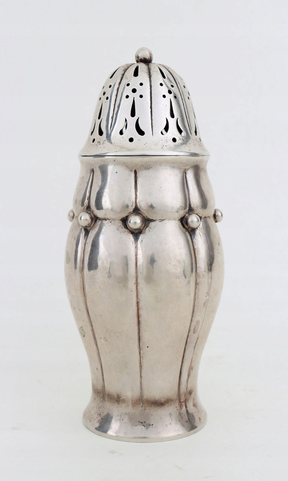 Контейнер для сахарной пудрыиз серебра 800 пробы. Корпус ручной ковки с декоративной дробеструйной обработкой.