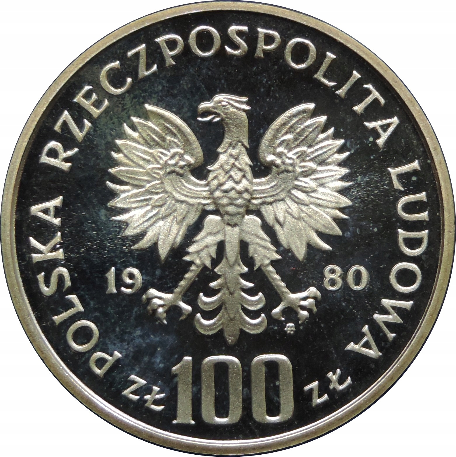 СЕРЕБРЯНАЯ МОНЕТА - Ag - PRL - 100 ЗЛОТЫХ 1980 XXII ОЛИМПИАДА - МЕННИКА - OY7412