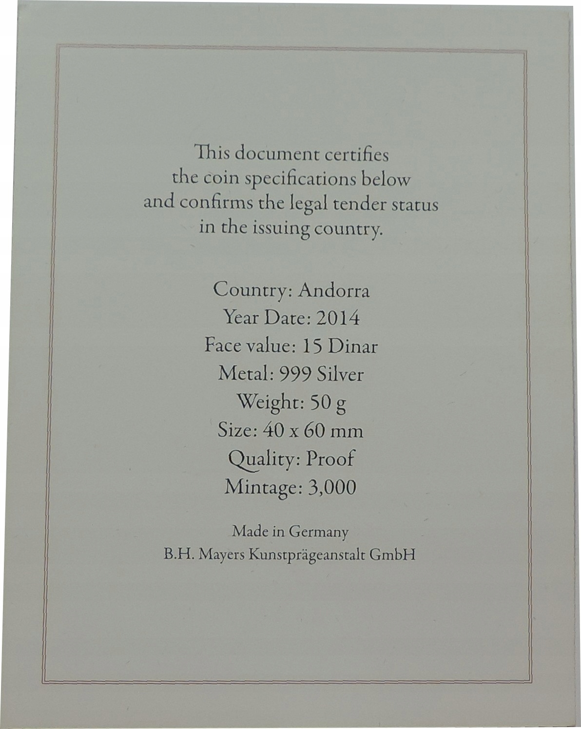Оплачивая «Серебряная монета - Ag Coin - Collector - Andora - Ag999 -oy5842» данное изделие из «Андорра» вы можете быть уверены, что после оформления заказа, доставки в Украину, вы получите именно то, что заказывали, в оговоренные сроки и европейского качества.