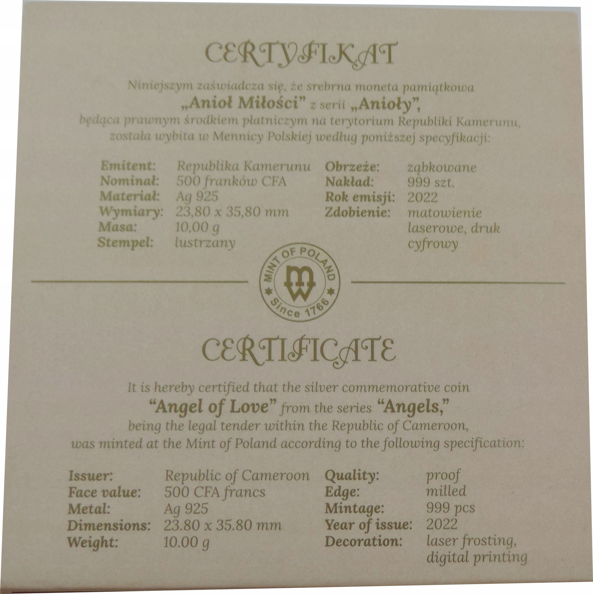 Просматривая «Серебряная монета - Ag Coin - Collector - Cameroon - Ag925 -oy2870», вы можете быть уверены, что данный товар из каталога «[rubrica_name]» будет доставлен из Польши и проверен на целостность. В цене товара, указанной на сайте, учтена доставка из Польши. Внимание!!! Товары для Евросоюза, согласно законодательству стран Евросоюза, могут отличаться упаковкой или наполнением.