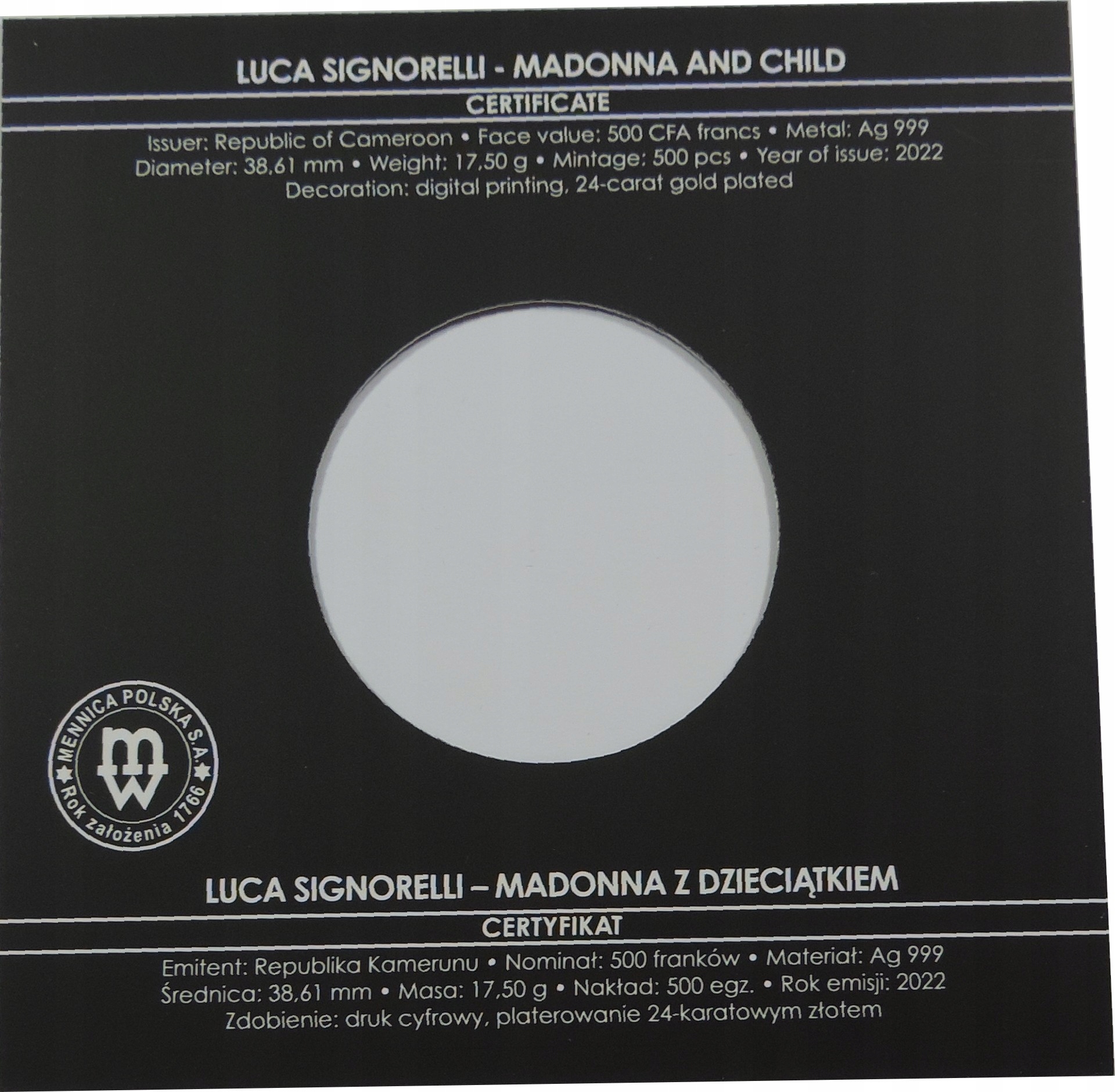 Просматривая «Серебряная монета - Ag Coin - Collector - Cameroon - Ag999 -oy2864», вы можете быть уверены, что данный товар из каталога «[rubrica_name]» будет доставлен из Польши и проверен на целостность. В цене товара, указанной на сайте, учтена доставка из Польши. Внимание!!! Товары для Евросоюза, согласно законодательству стран Евросоюза, могут отличаться упаковкой или наполнением.