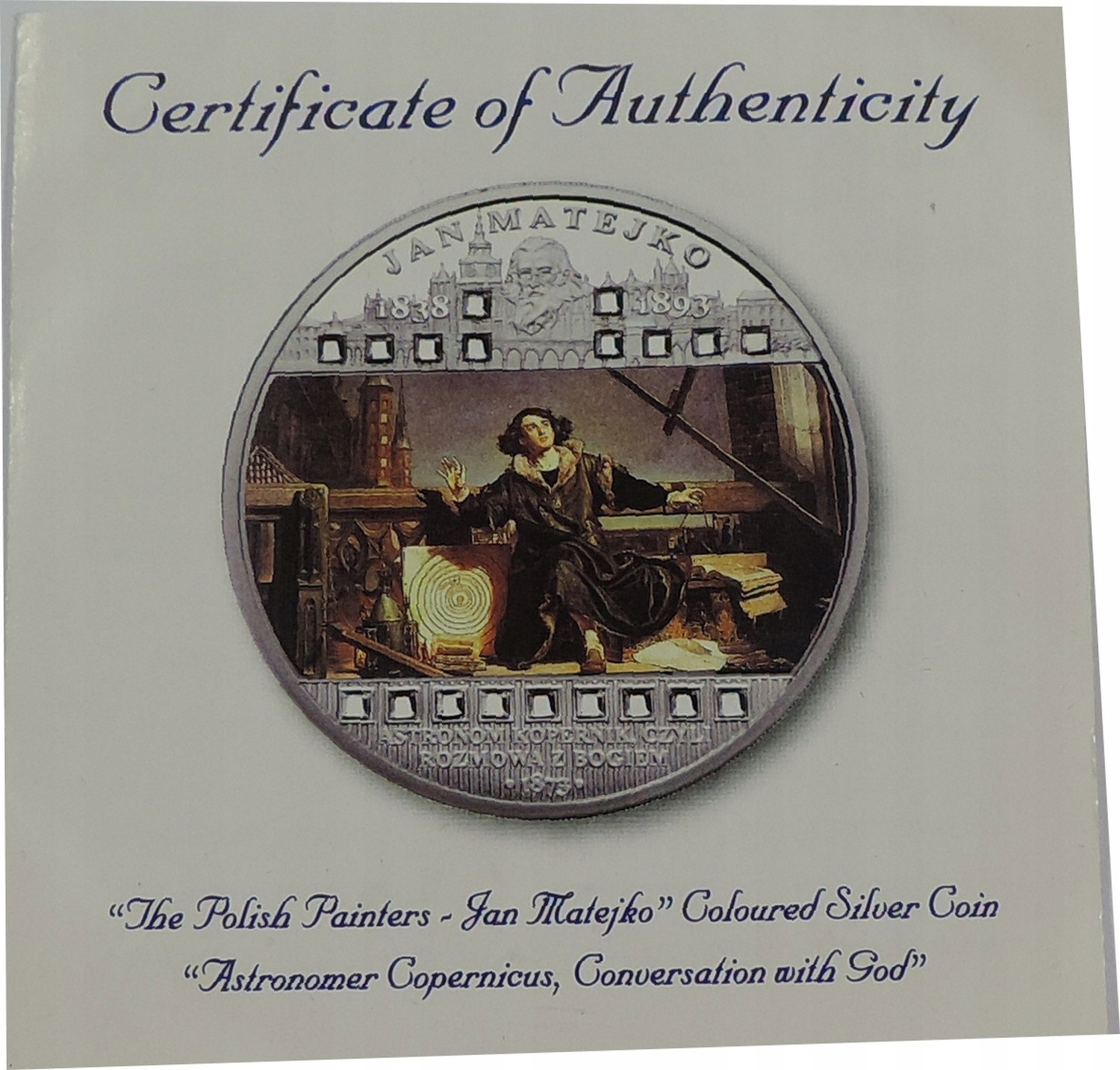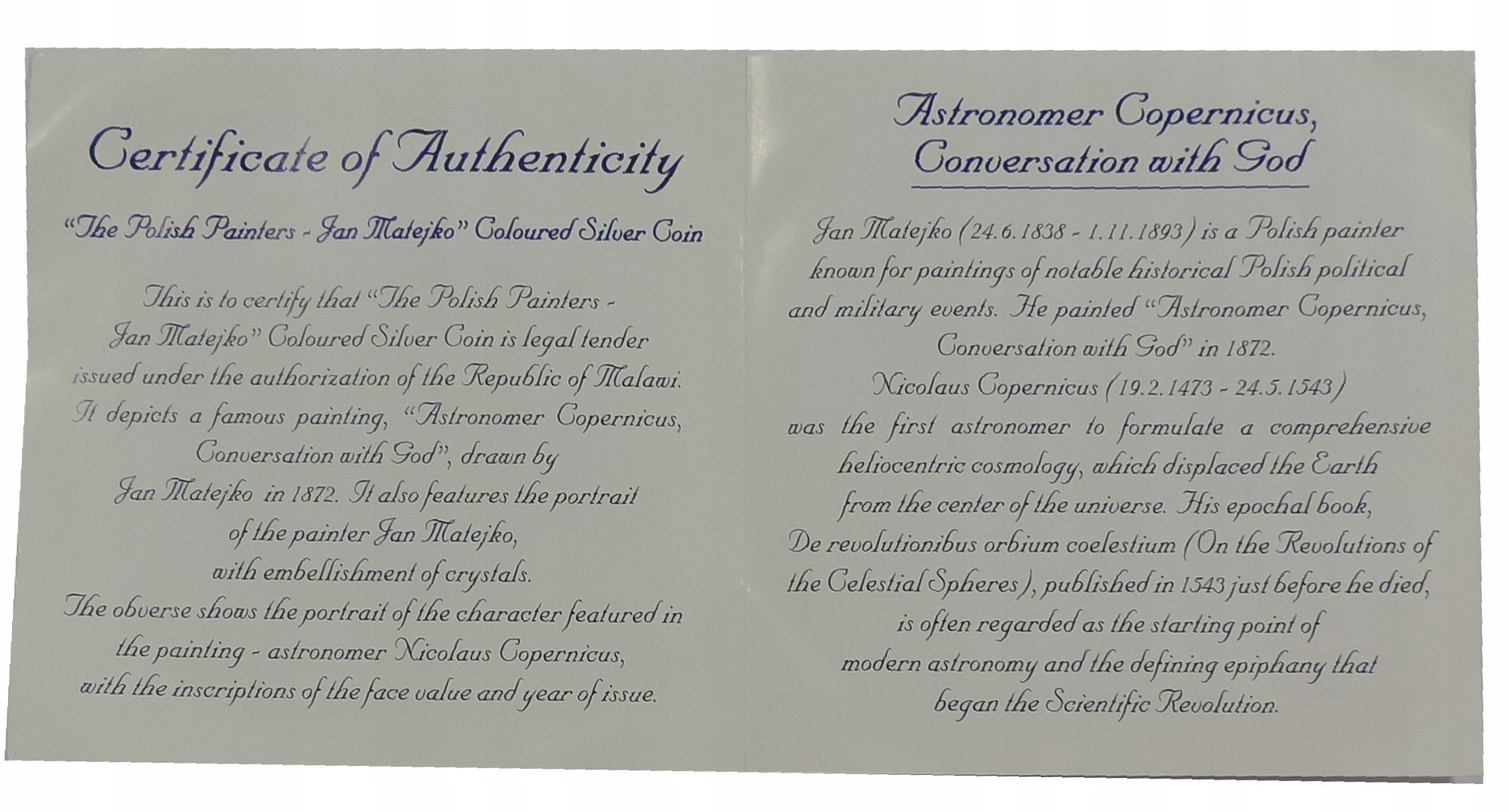 Серебряная монета - AG COIN - Jan Matejko - Malawi - 3 унции - Ag999 -oy2876