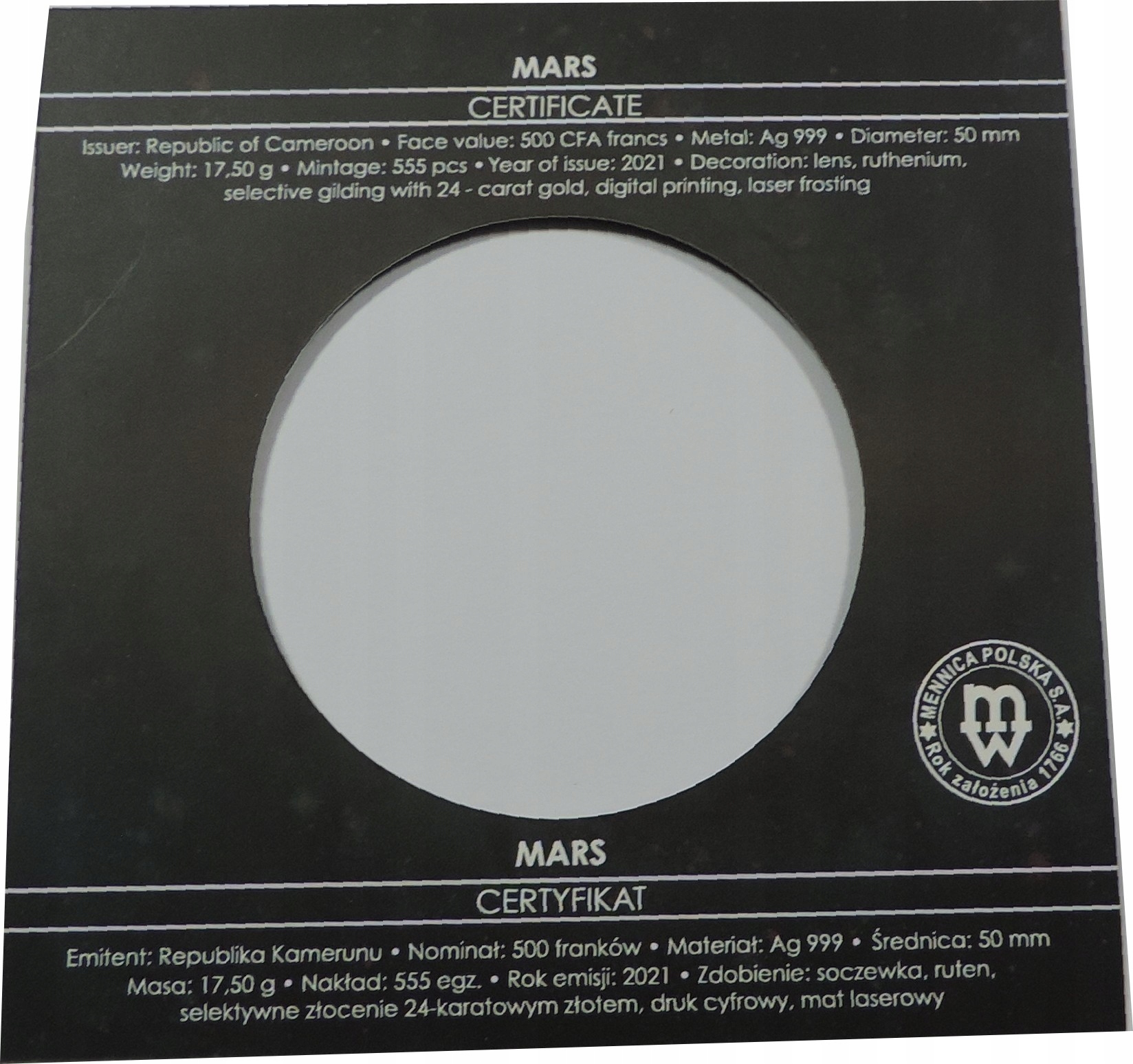 СЕРЕБРЯНАЯ МОНЕТА - Ag МОНЕТА - КОЛЛЕКЦИОННАЯ - КАМЕРУН - Ag999 -OY7173