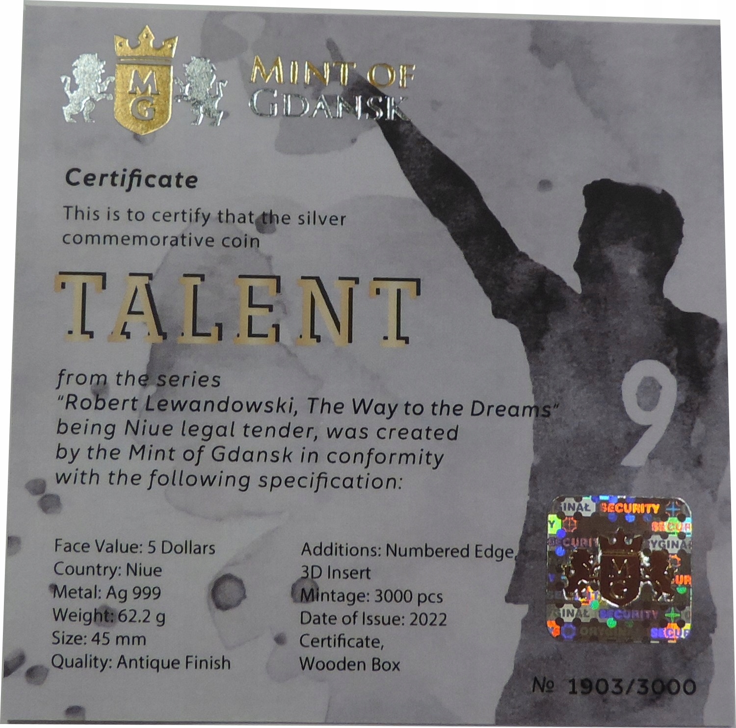 Серебряная монета - Ag Coin - Lewandowski - Niue - 2 унции Ag999 -oy4511