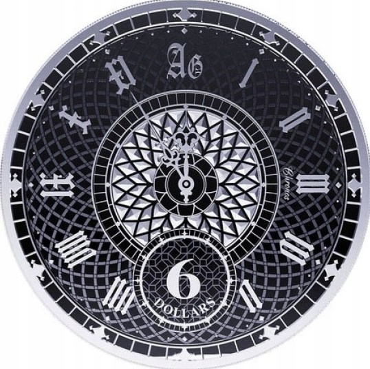 На аверсе изображен портрет королевы Елизаветы II и информация о весе, чистоте металла и году чеканки. . На реверсе изображен циферблат с указанием времени 11:55. На реверсе также содержится информация о номинальной стоимости монеты и стране-эмитенте: Токелау.