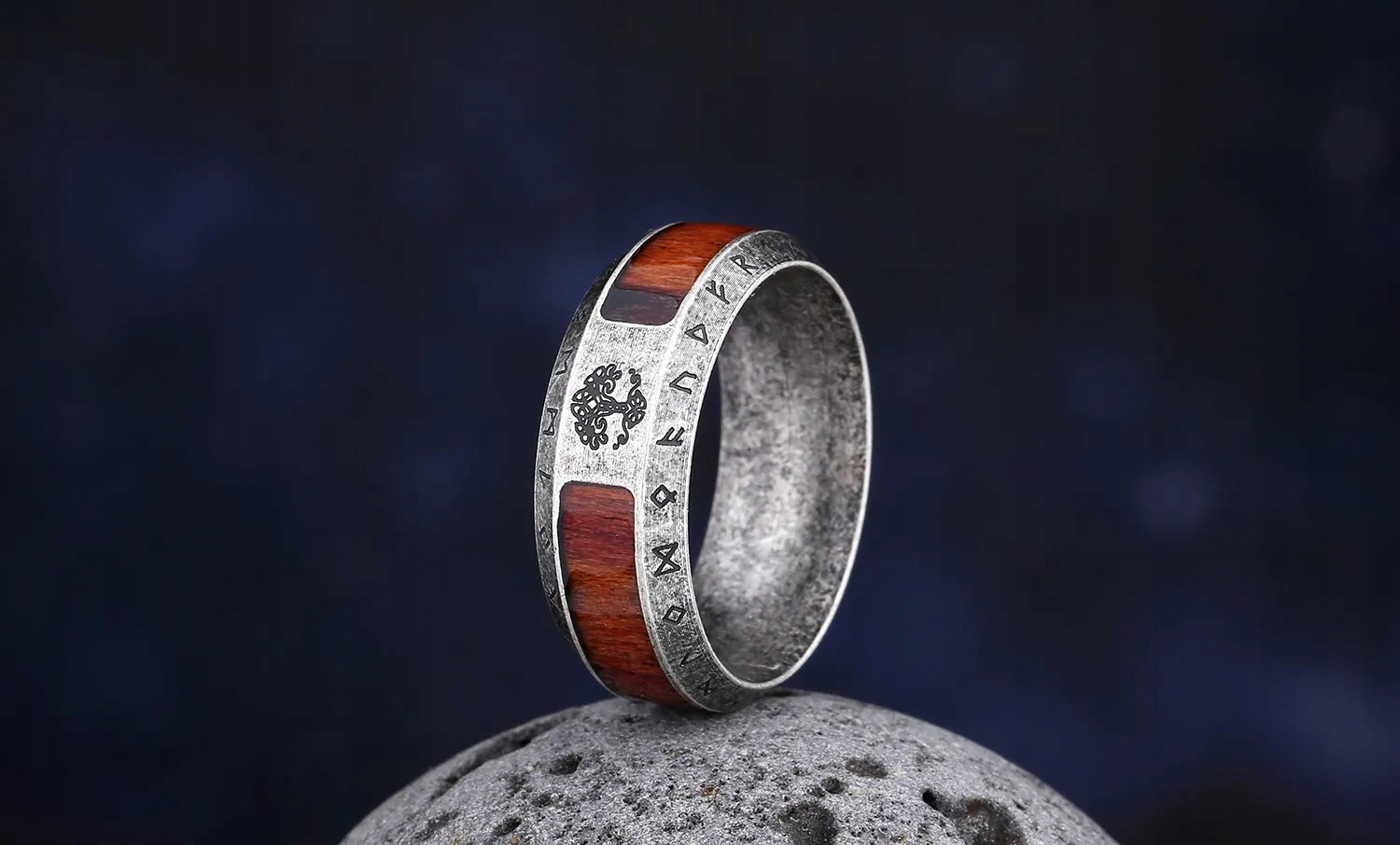 Красивое скандинавское обручальное кольцо с рунами «Древо жизни»