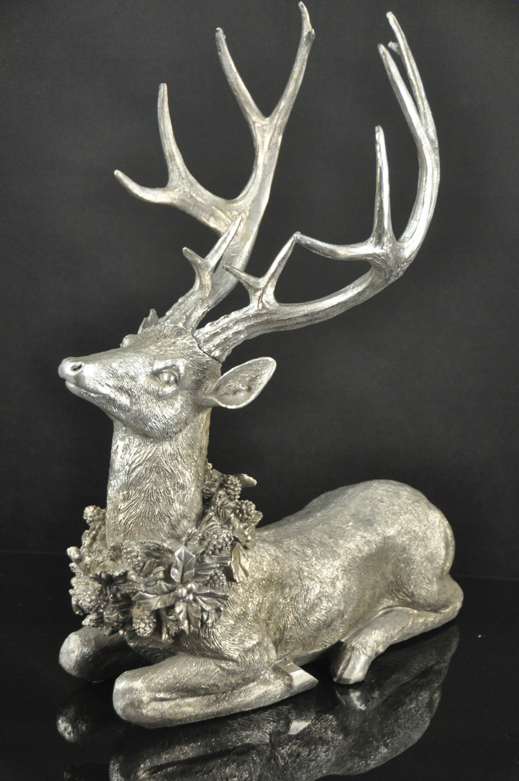 Большой олень, сидящий в серебряном золоте из полирезинового пластика. h1> Олень. Рождество