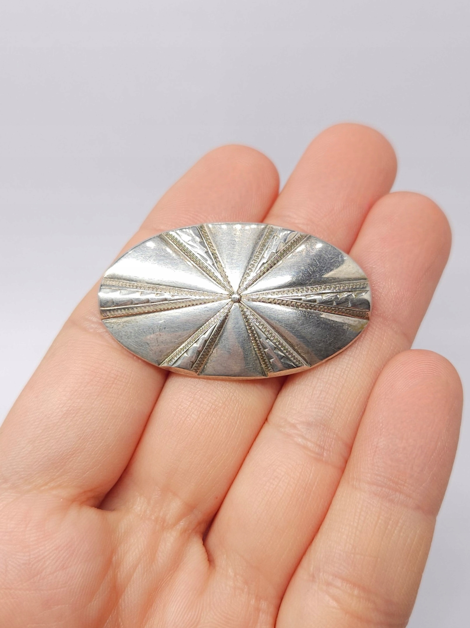 Серебряная овальная брошь довоенного производства, серебро пр. 0,800 гильош