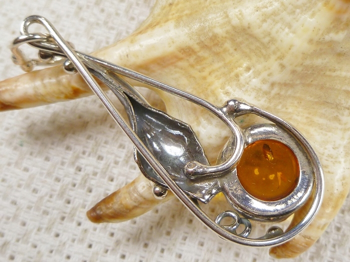 Серебряный кулон 605/19 с янтарем -РУЧНАЯ РАБОТА-