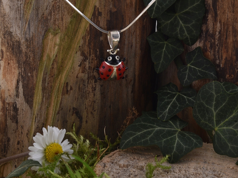 Кулон из серебра 925 пробы Божья коровка с цветной эмалью.