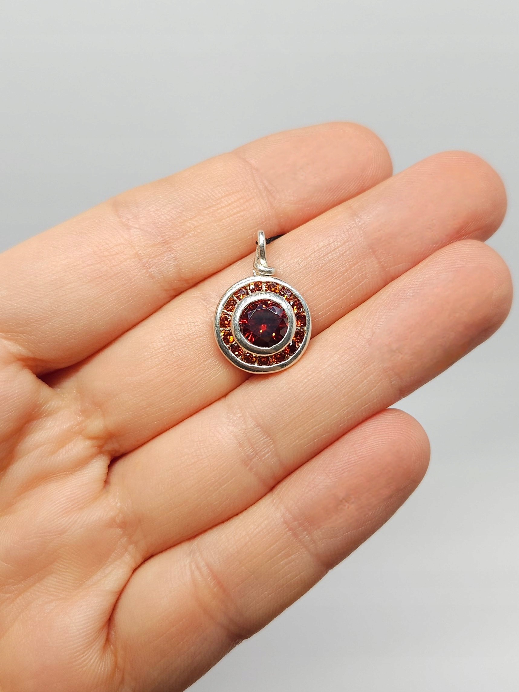 Серебряный кулон с красными натуральными камнями, серебро 0.925, круглый