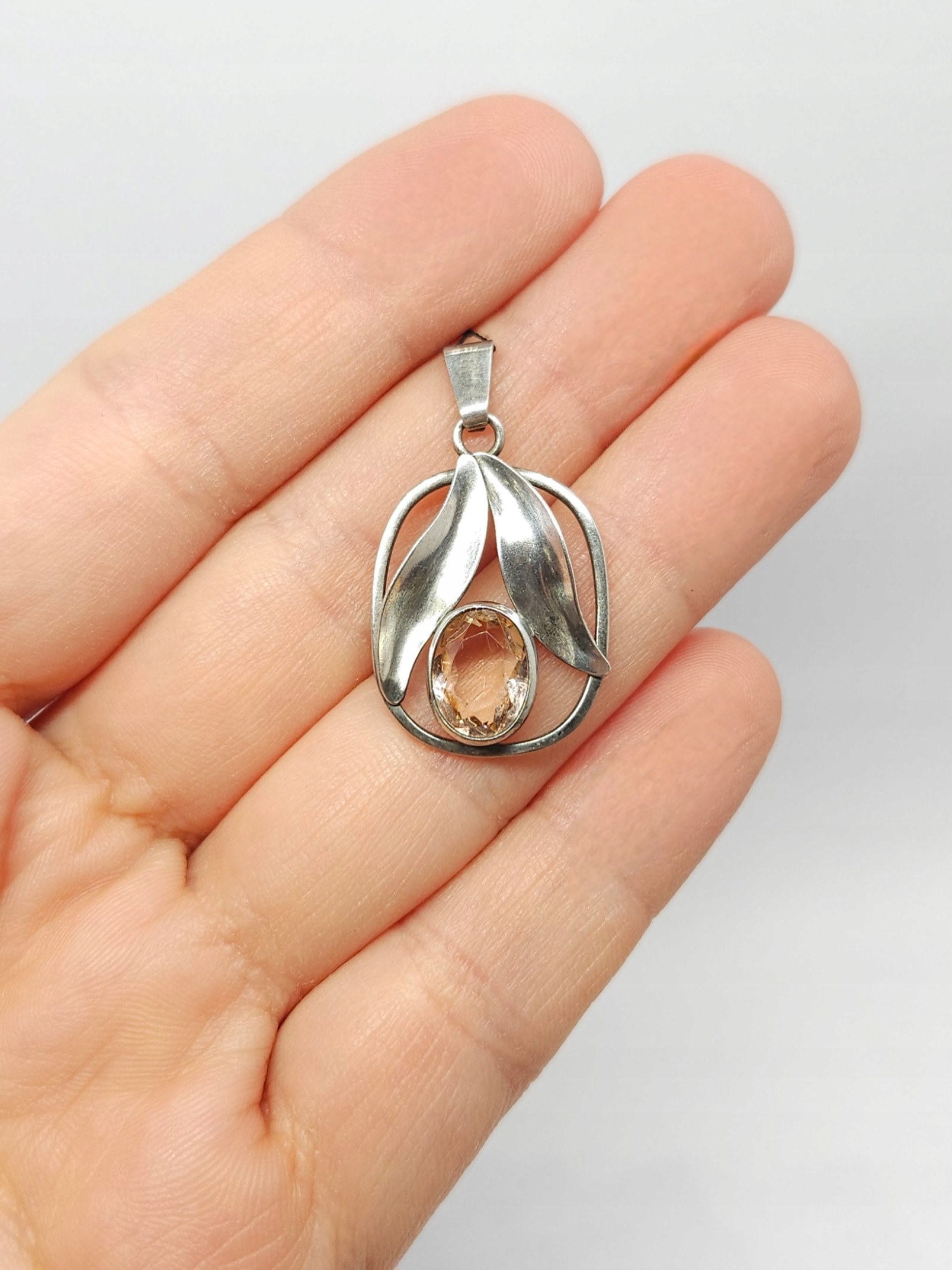 Серебряный кулон с цитрином, серебро 0.835, листья
