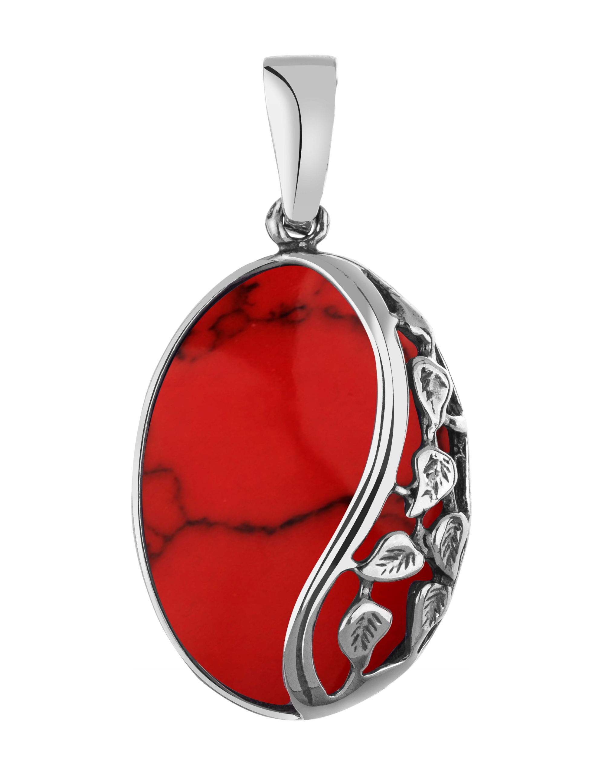 Предмет предложения - красивый серебряный кулон с кораллом и декоративными листьями.