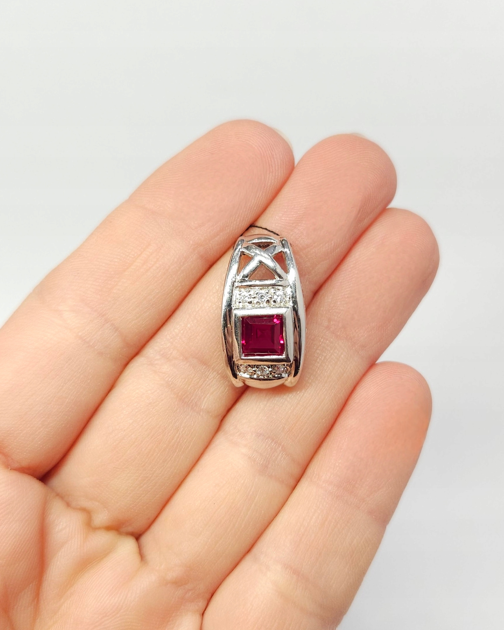 Серебряный кулон с синтетическим рубином. и цирконы, серебро пр. 0,925