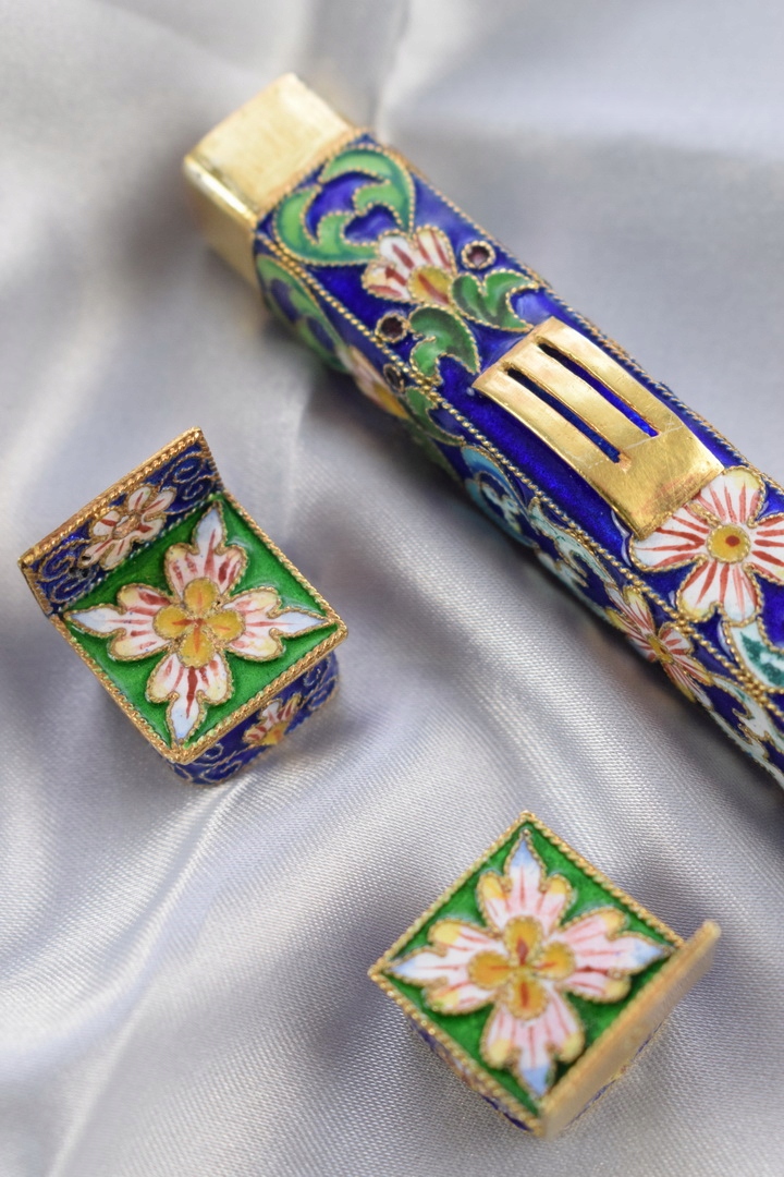 Продается Серебряная Позолоченная Еврейская Мезуза - Серебряная Эмаль Царской России ПР. 84