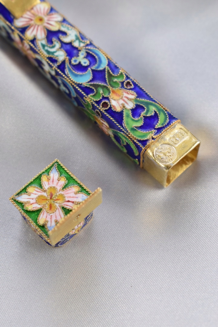 Срібна позолочена єврейська мезуза - срібна емаль Царська Росія ПР. 84