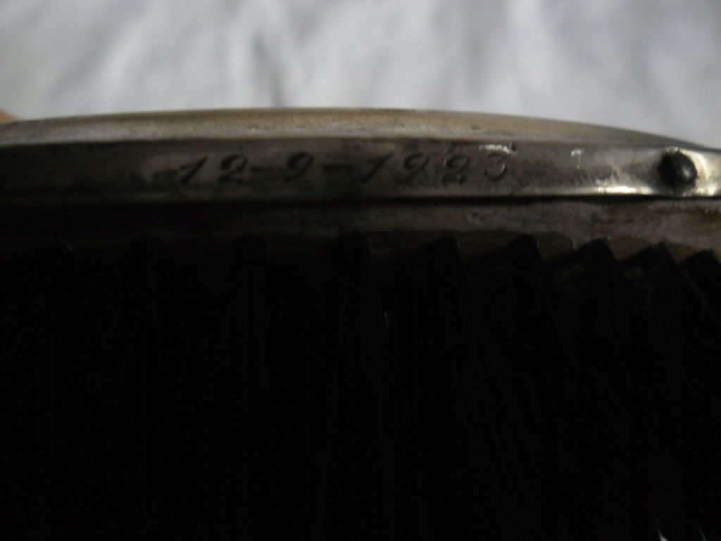 АНТИЧНАЯ СЕРЕБРЯНАЯ ЩЕТКА 1923 ГОДА С МОНОГРАММОЙ B E. ШВЕЦИЯ.НЕ ЗНАЮ, ДЛЯ ВОЛОС ИЛИ ОДЕЖДЫ, СТАВЛЮ НА ВОЛОСЫ.ПРОСТАЛСЯ ТЕСТЫ GAB 3 CROWNS S TULIP V7. СОСТОЯНИЕ ХОРОШЕЕ, С НЕБОЛЬШОЙ КОСМЕТИКОЙ.ДЕТАЛИ ВИДНЫ НА ФОТО.