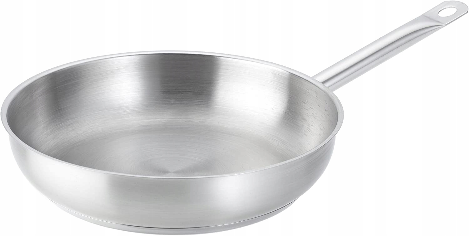 Профессиональная сковорода с глянцевым покрытием Отделка и элементы матовые, что дает интересный эффект. Эргономичная ручка прочная и идеально лежит в руке. Сковорода изготовлена из нержавеющей стали, что делает ее очень устойчивой к ржавчине, кислотам, царапинам и синякам. Сковорода изготовлена из очень толстого материала, имеет 3 слоя (в народе ее называют сэндвичем), состоит из: нержавеющей стали, алюминия, нержавеющей стали, что обеспечивает очень быстрый нагрев и длительное сохранение тепла. Полые ручки нагреваются гораздо медленнее, чем традиционные, что предотвращает ожоги. Для всех типов плит.
