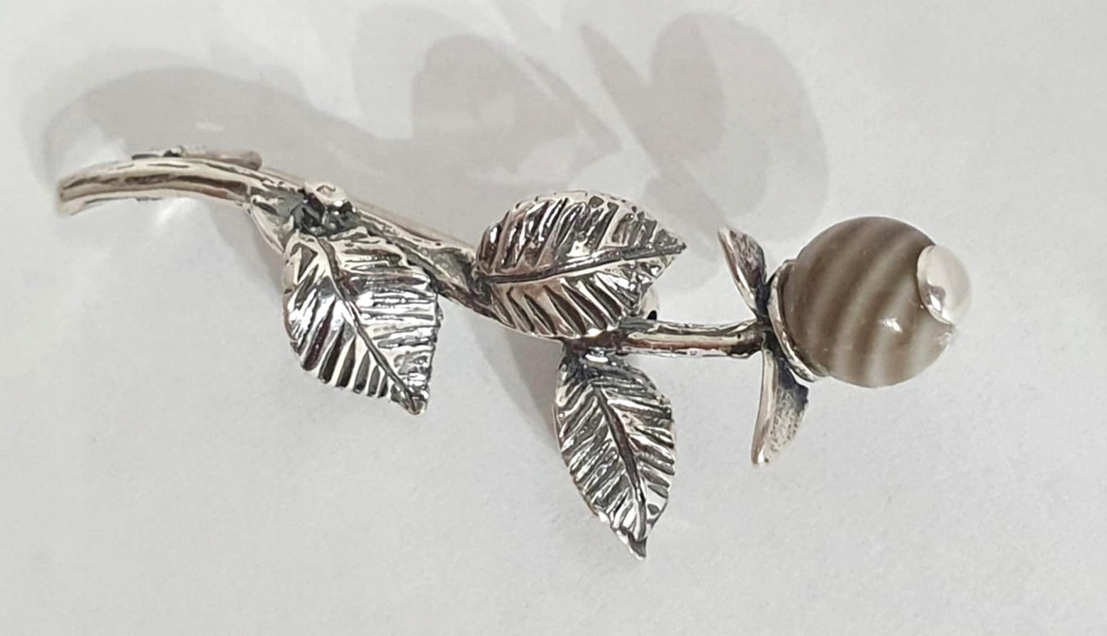 цветок брошь с полосатым серебряным 925 h1> Красивая и уникальная брошь из серебра 925. Бруп с цветочной формой, украшенная натуральным полосатым кремнем. Брошь идеально подходит как подарок для любого уникального случая. h2> Параметры: h2> - Материал: Серебро 925 li>