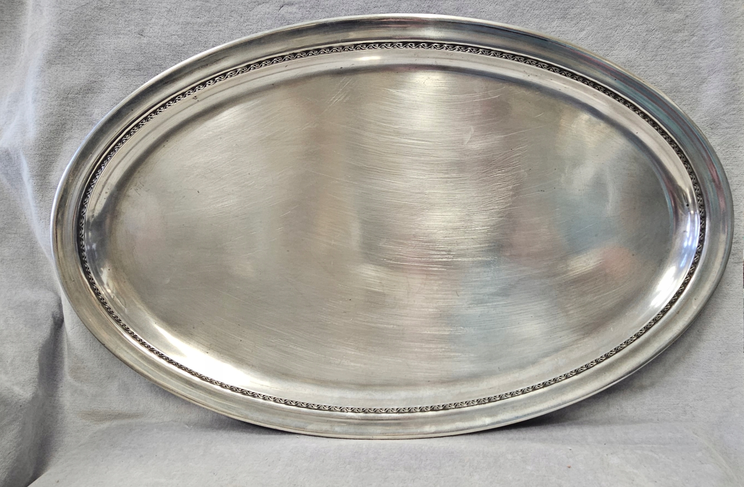 Серебряный поднос Koch & Bergfeld серебро, пр.800, вес 1361 г, размеры 54х33 см. ссылка;| марка мастерской Koch & Bergfeld - Бремен / полумесяц / корона / 800 шт. № 57721 и клеймо Варшавы в овале W, голова женщины в платке и цифра 3. Германия, Koch&Bergfeld (основано в 1859 г.), Бремен, 1888-1920 гг.