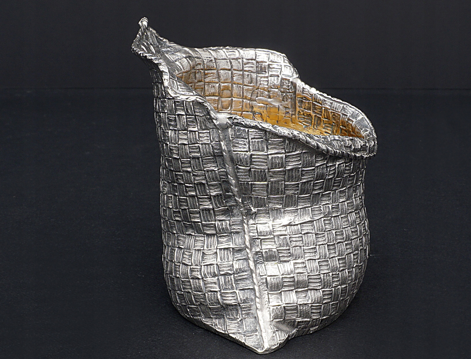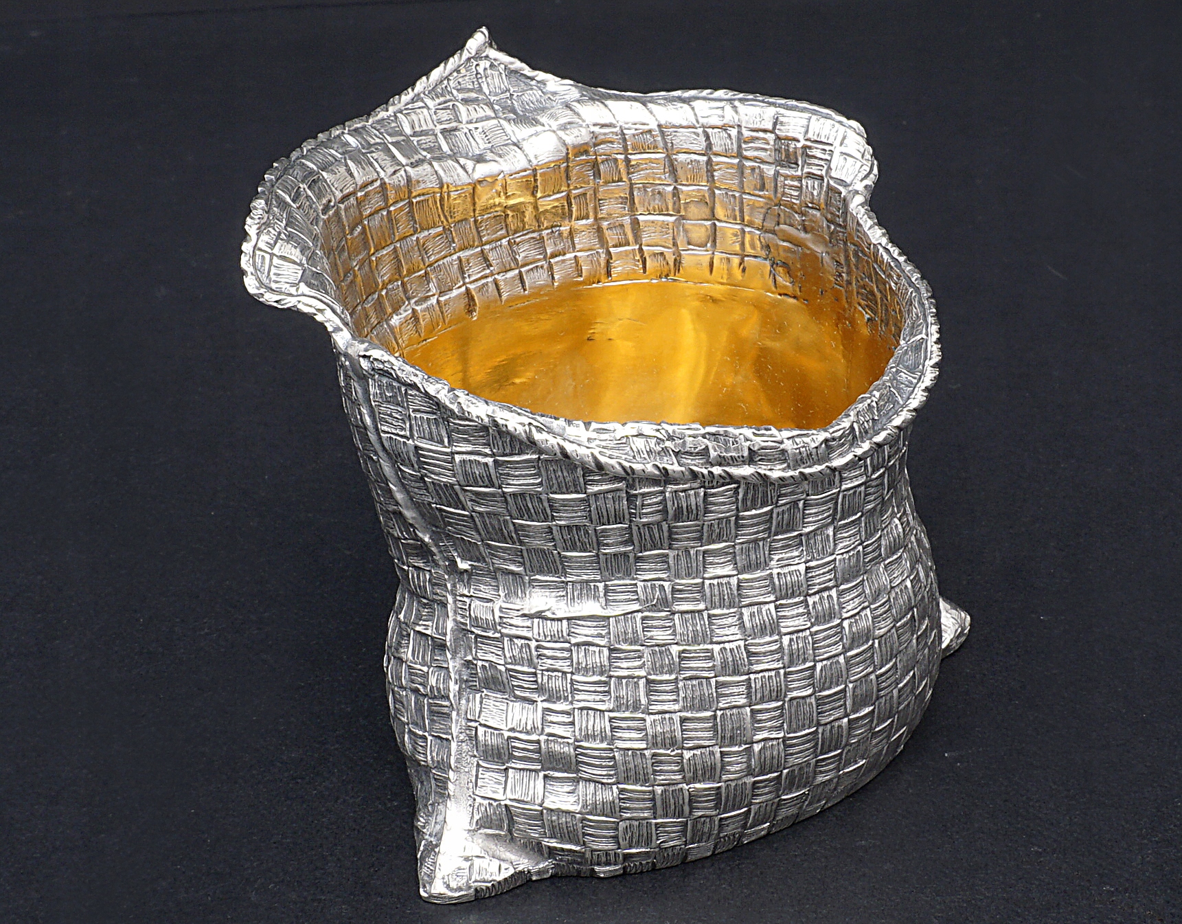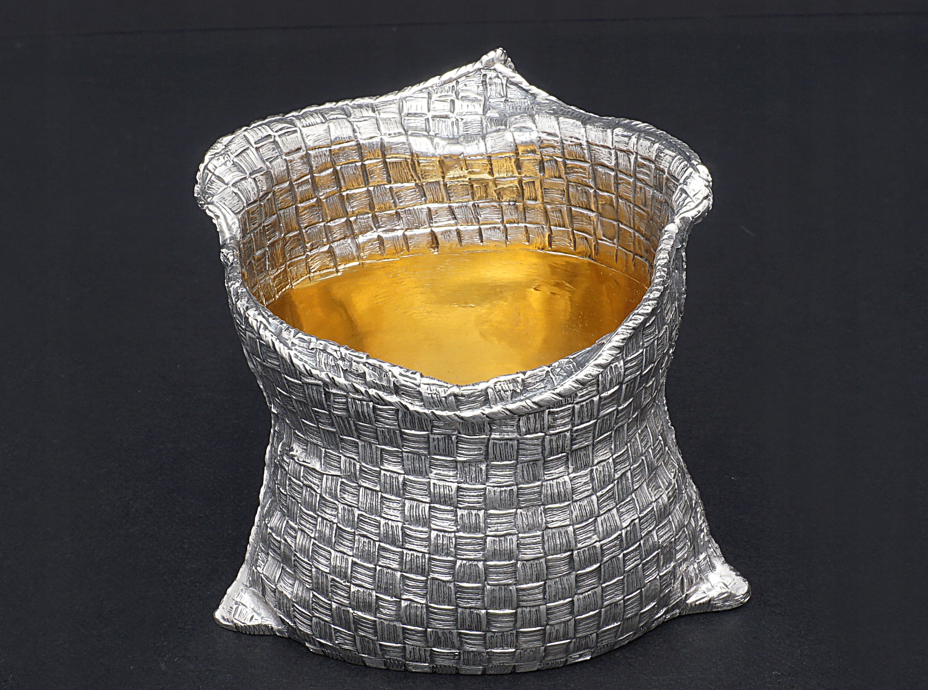 Тарелка в форме мешочка из серебра 925/1000 пробы.