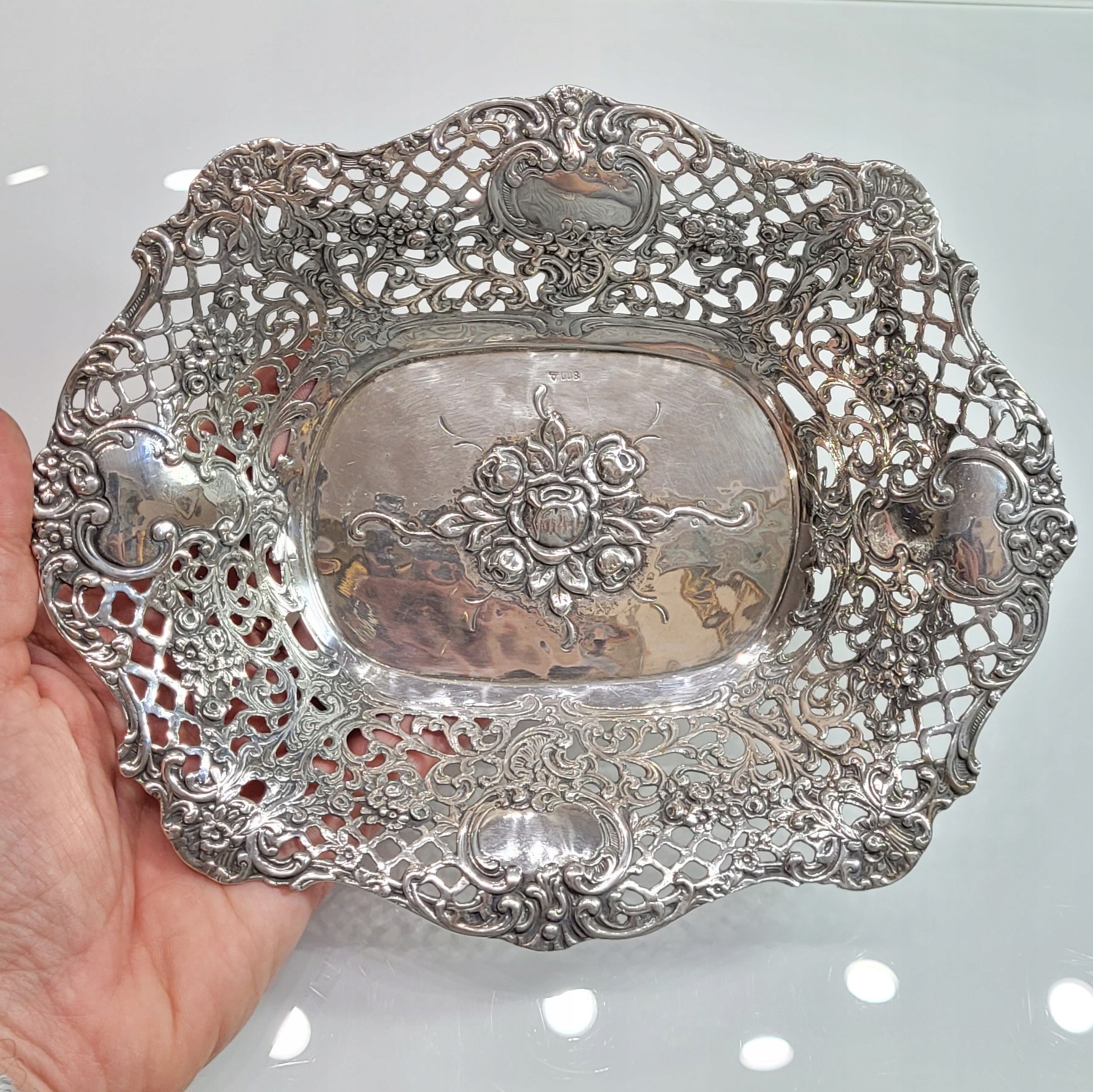 Срібна тарілка, тарілка, піднос, кошик, срібло пр. 0.800 Ажур - троянди
