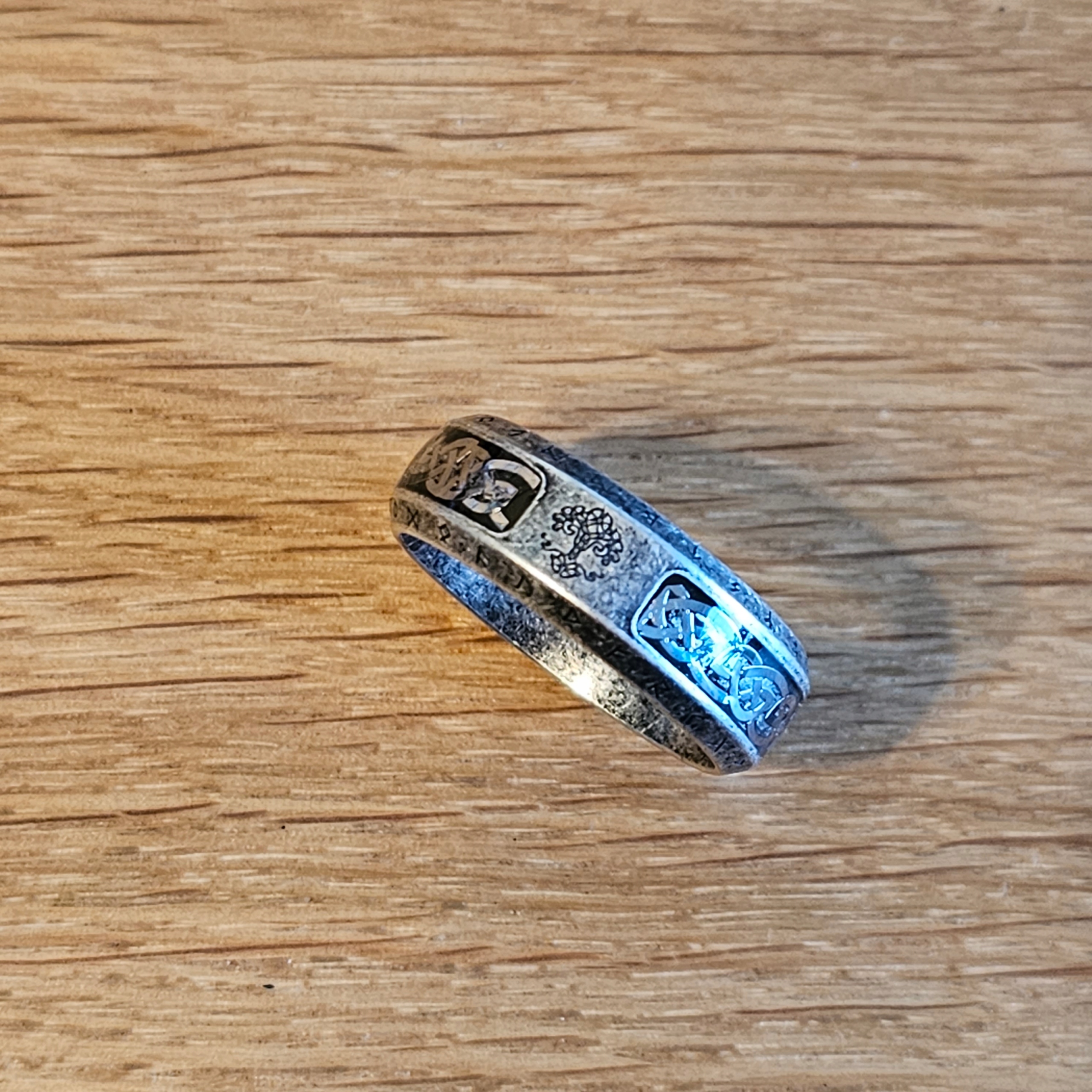 СРІБНА ВЕСІЛЬНА ПЕЧАТКА ДЕРЕВО ЖИТТЯ КІЛЬЦЕ З РУНАМИ РУНИ R20