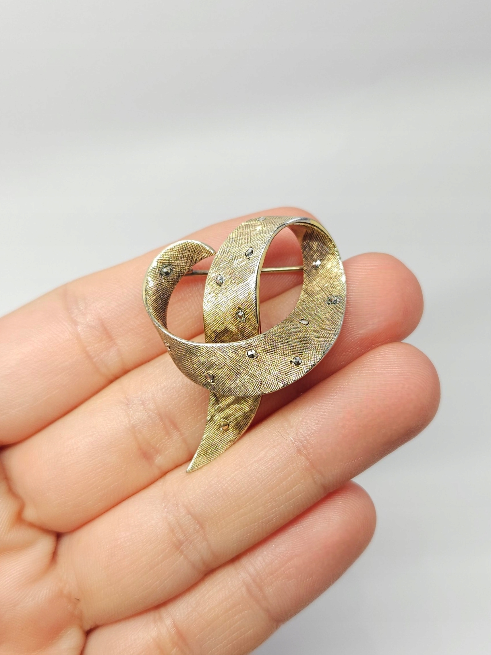 Серебряное золото, броши с марказитами, лентой, серебряным пиарщиком. 0,935