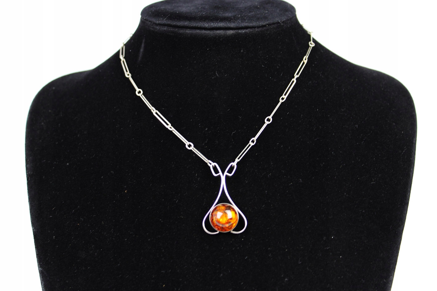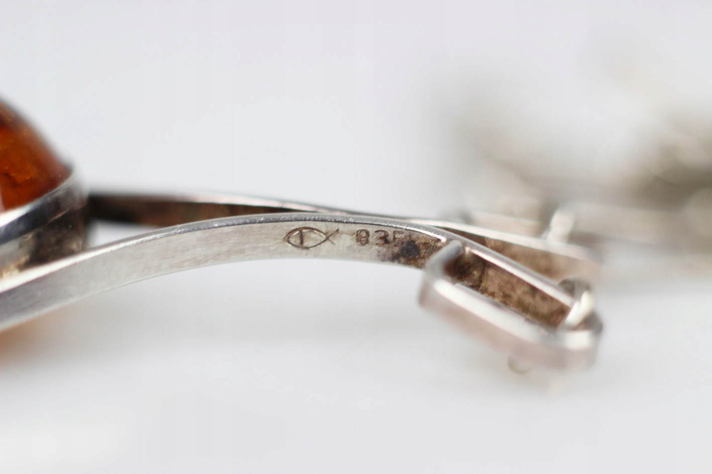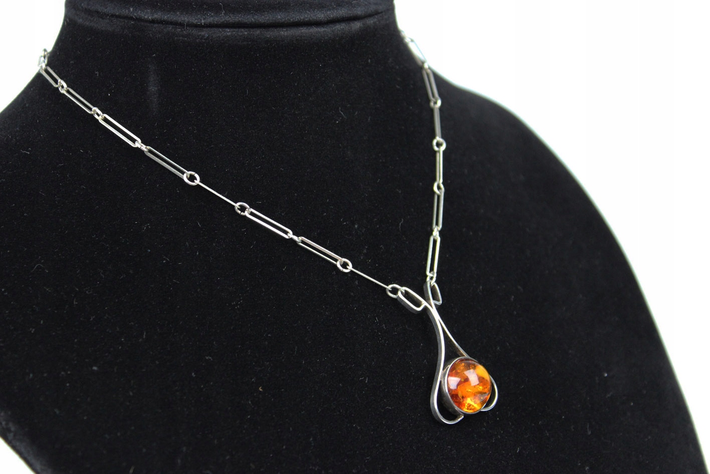 Элегантное модернистское колье немецкого бренда Fishland из серебра 835 пробы, украшенное натуральным балтийским янтарем глубокого медового цвета. Кулон характерной для этого бренда формы - выполнен из изящно гнутого серебра, создающего органичную оправу для янтарного шара, - образец классического немецкого ювелирного модернизма. Ее дополняет цепочка со звеньями-клипсами в стиле минимализма 1960-х годов. Все отмечено знаком Fishland и пробой 835. Состояние очень хорошее, естественная патина. Размеры: