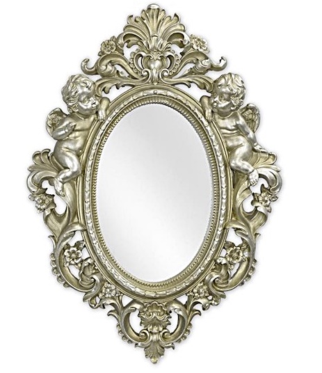 Красивое, эффектное зеркало с фантастическим ажурным декором и купидонами в старинной серебряной раме.
