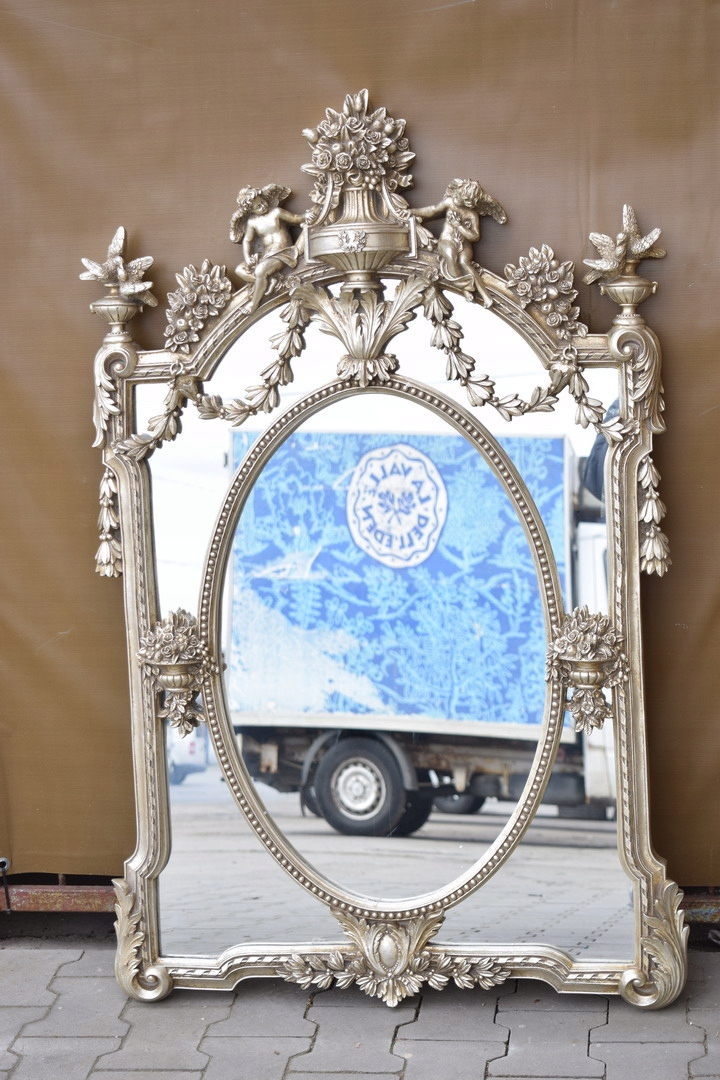 СЕРЕБРЯНОЕ ЗЕРКАЛО С АНГЕЛАМИ - КРИСТАЛЛ 135X83СМ 24H