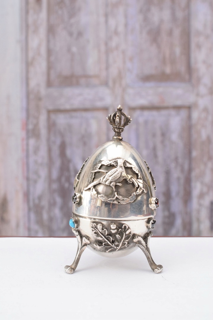 Серебряное Охотничье Царское Яйцо - Фазан - Серебряное Яйцо - Россия 84 - Уникальное