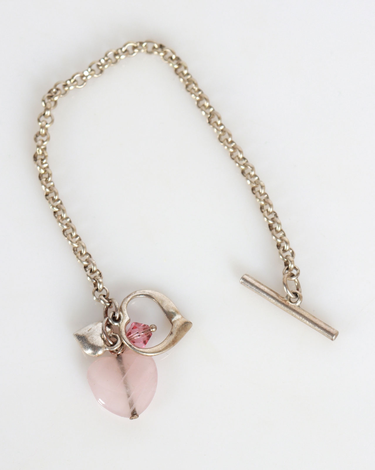 Колье и браслет из серебра 925 пробы. Колье украшено подвеской в форме сердца, браслет украшен сердечками из серебра и агата.