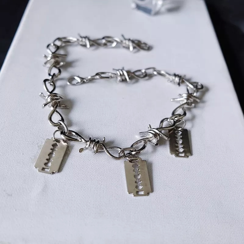 Серебряное колье-чокер в виде колючей проволоки с подвесками-лезвиями!