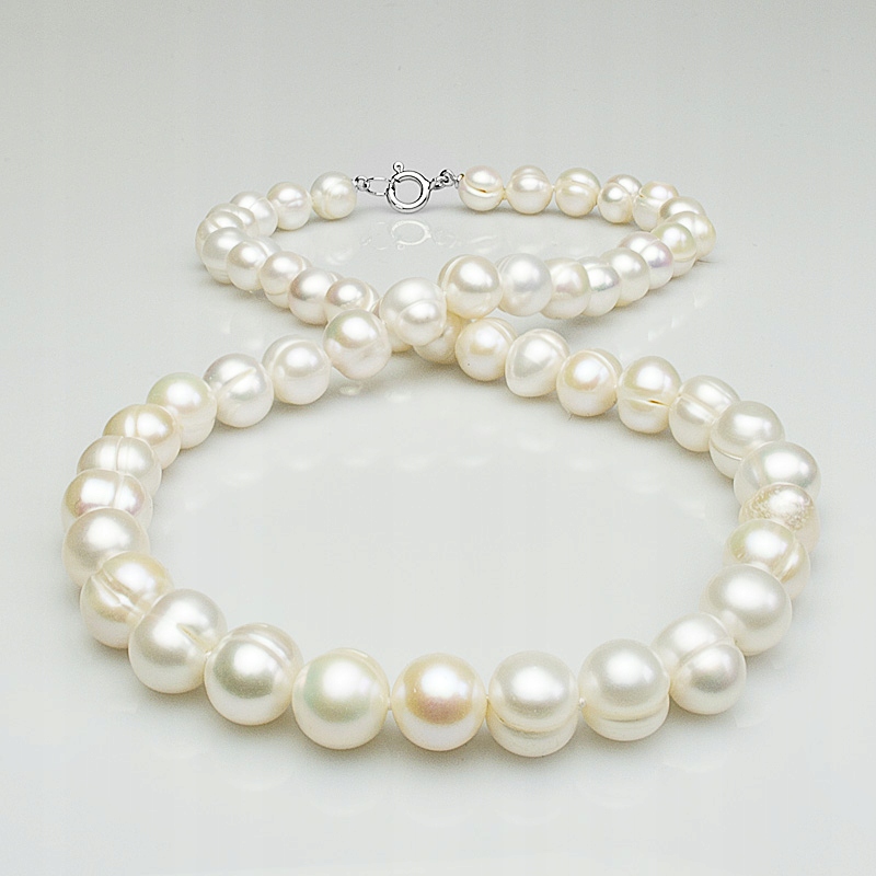 Классическое колье из белого настоящего пресноводный жемчуг. Жемчуг среднего размера с красивым блеском идеален для повседневного ношения, а также подойдет к элегантному наряду.