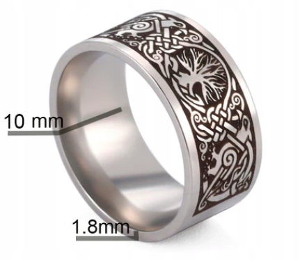 Красивое скандинавское обручальное кольцо с деревом жизни и вороном