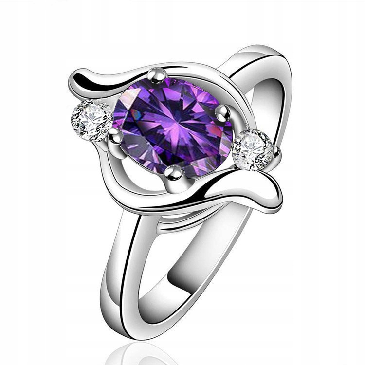Предмет предложения - красивое серебряное кольцо с фиолетовым цирконом и белыми цирконами.