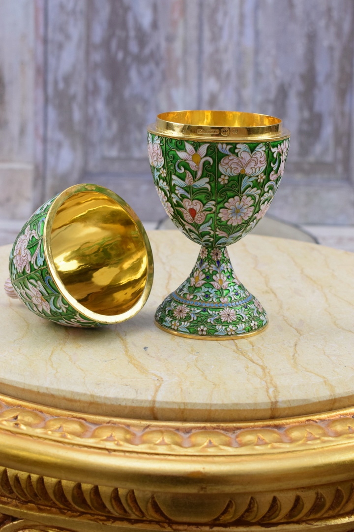 Срібне позолочене яйце - срібна емаль Царська Росія пр. 84 - 455г - УНІКАЛЬНІ
