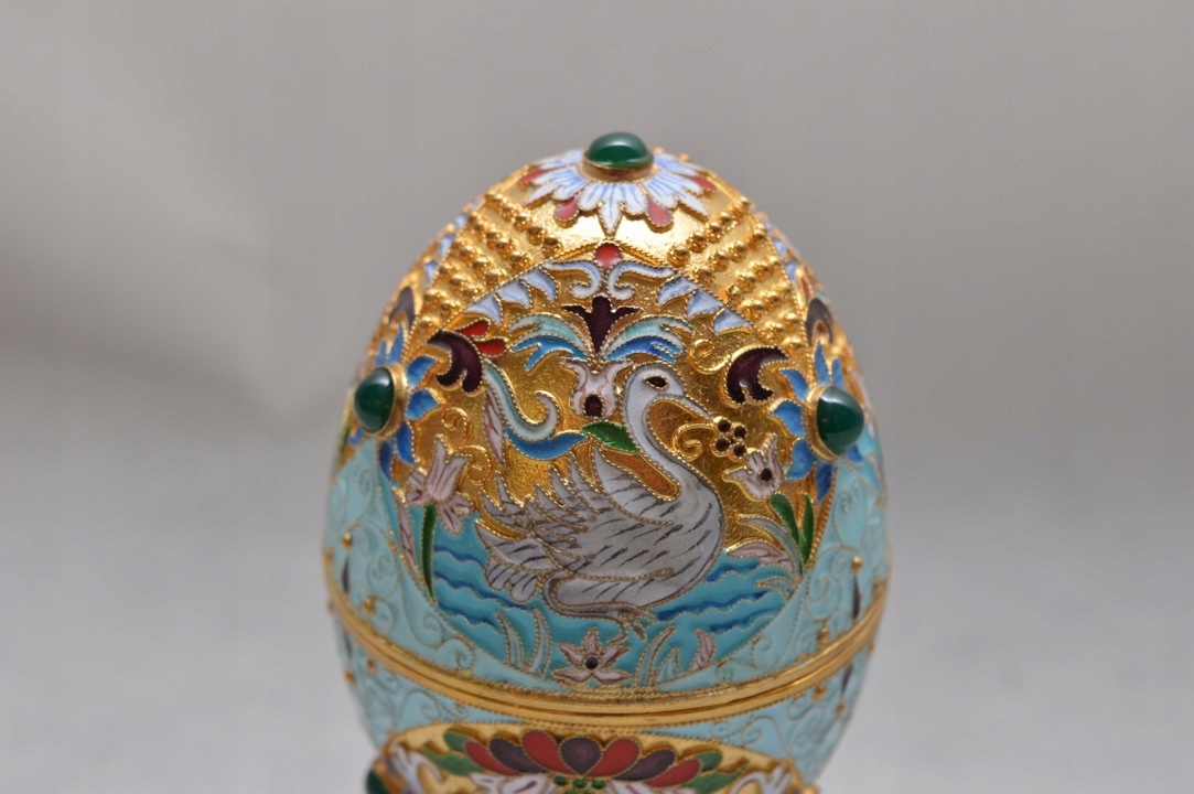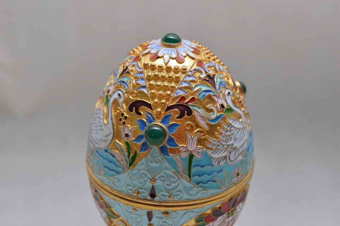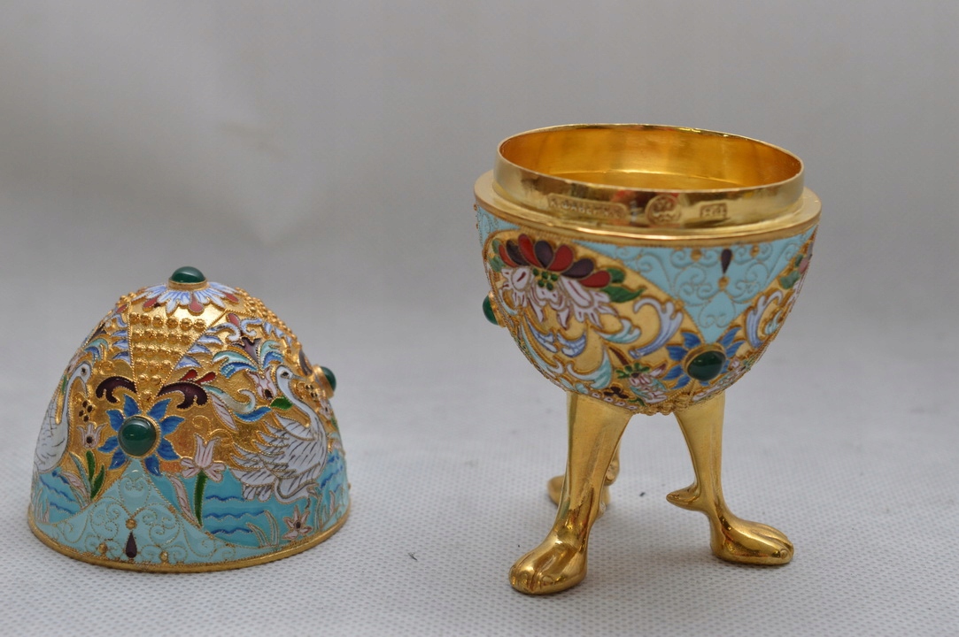 Срібне позолочене яйце SRERO RUSSIA Емаль Лебідь