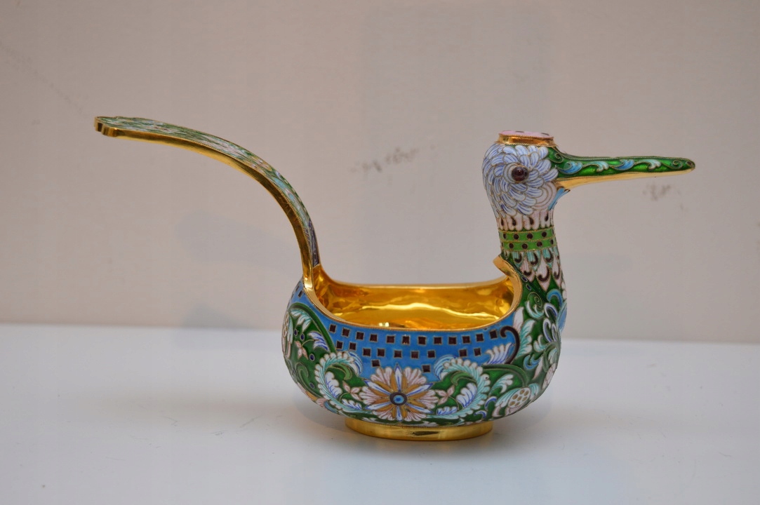 Здравствуйте, предлагаю Вам ковш из серебряного эмалированного ковша.