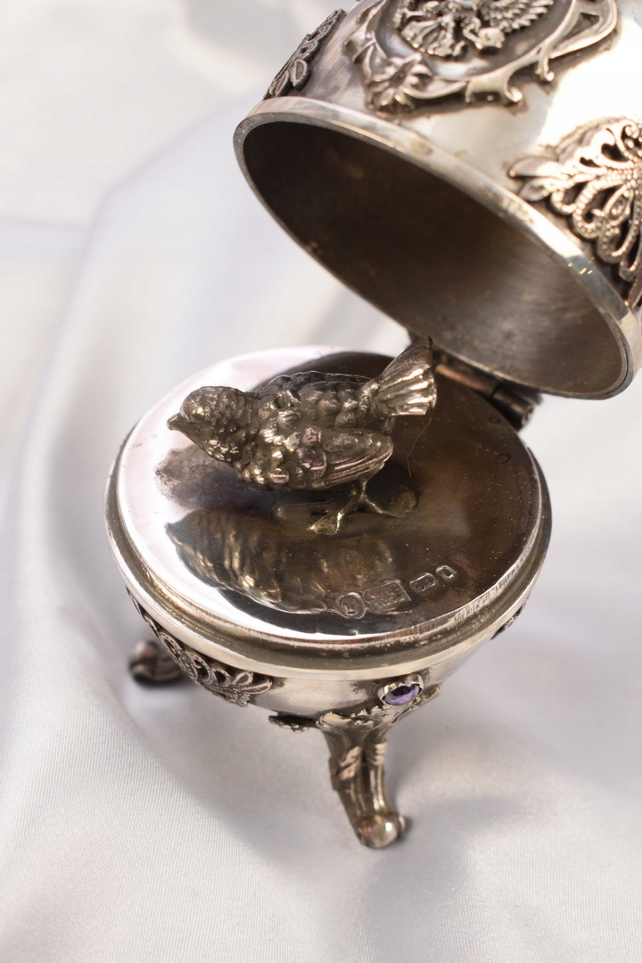 Срібне яйце - Царська Росія - Модерн - Яйце Росія пр. 84 - Горобець 222г